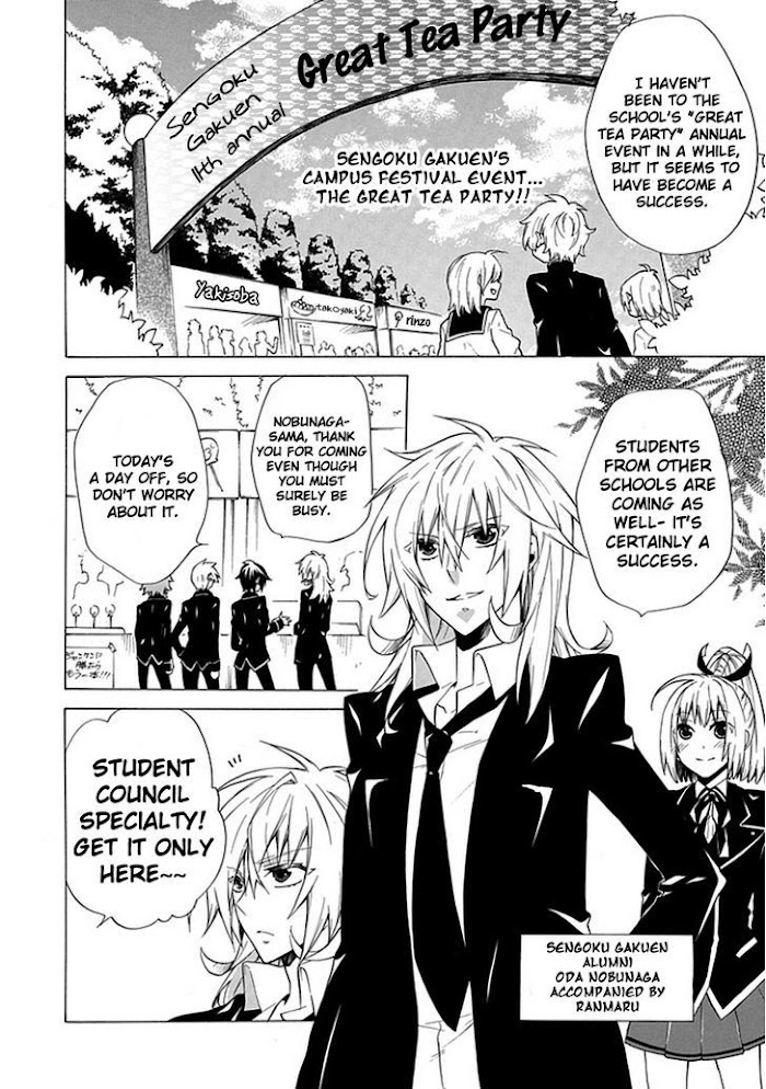 This manga takes place in a school where the students are based on famous shoguns in Japanese history. Sengoku Gakuen was once like a normal school but Oda Nobunaga, the student president overthrew the teachers and practically made them powerless. He built a school of the students, for the students and by the students. Nobunaga eventually graduated and left Hideyoshi in charge as the student president. However, Hideyoshi soon drops out of school to help Nobunaga rule Japan as he ruled Sengoku Gakuen. The story picks up here as there is a battle between Ishida Mitsunari, an uptight and conservative, yet hardworking boy, and Tokugawa Ieyasu, the temporary school president who has lots of followers, fighting for the school president seat. We also see other famous figures as fellow students such as Ootani Yoshitsugu who is loyally following Mitsunari and Oichi, Nobunaga's younger sister. Who will win the student body president position and take command of the school? (Source: MU)