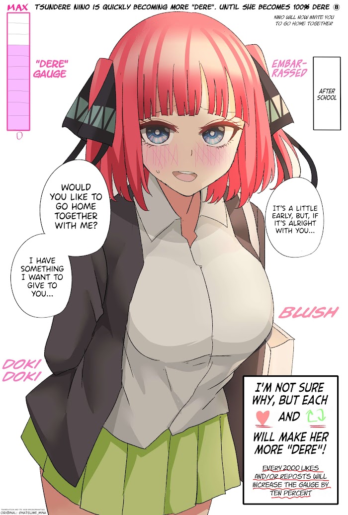 いいねで反応される程どんどんデレていく二乃 , Ii ne de Hannou Sareru Hodo Dondon Dereteiku Nino (5Toubun no Hanayome) , Tsundere Nino rapidly becomes more and more "Dere" through likes and reposts , Tsundere Nino is quickly becoming more "Dere". Until she becomes 100% Dere