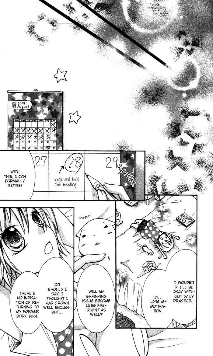 One day, while in search for more food, our heroine stumbles upon a jar of what looked like umeboshi; little did she know that it would bring her more than just a full stomach. The mysterious snack somehow makes her shrink and she can only grow back when she eats something (which is a bit of a chore if you're THAT tiny). And if that's not troublesome enough, she's also dealing with her crush who seems to like her best friend!? (Source: Shoujo Crusade)