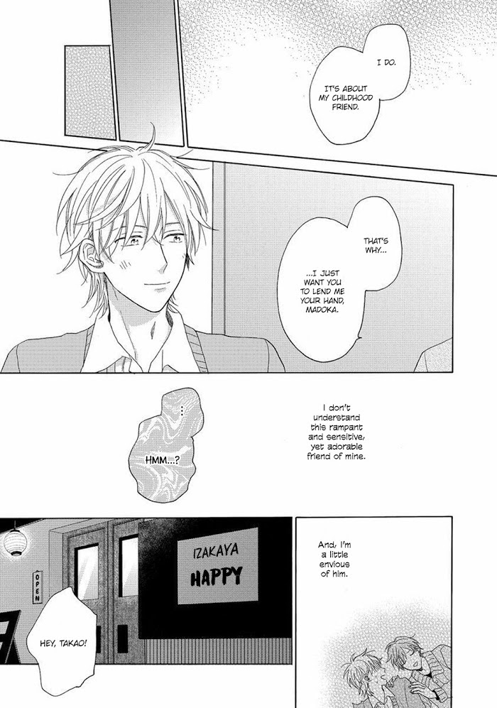 A Runaway At 3 AM manga summary: Takaoka and Yukihito sees each other as their life-long partners. However, one day, Yukihito left home while Takaoka was away, leaving only a note saying, "Thank you for everything," and his key for the house. 2 years later and Takaoka still couldn't forget about Yukihito while wondering if it's all right to let things stay as they are. Under these circumstances, a younger man, who looks like Yukihito, was waiting for him by his house, claiming to be his runaway lover. This book also contains a short story of childhood friends who got intimate with each other but got separated after graduating high school, entitled, "Sense of Love."