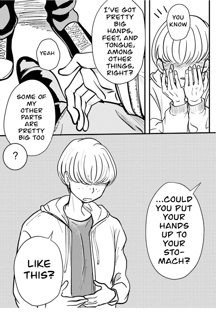 [A non-human with many "big" traits a human who loves non-humans]Kiyotaki, who's looking for a lover, decides to meet someone through a dating app that is rumored to let you meet non-humans! The person who shows up to their first date is a very tall, long-tongued, and incredibly charismatic non-human Morebito! Fascinated by non-humans, Kiyotaki becomes closer with Morebito as their relationship gets more intimate