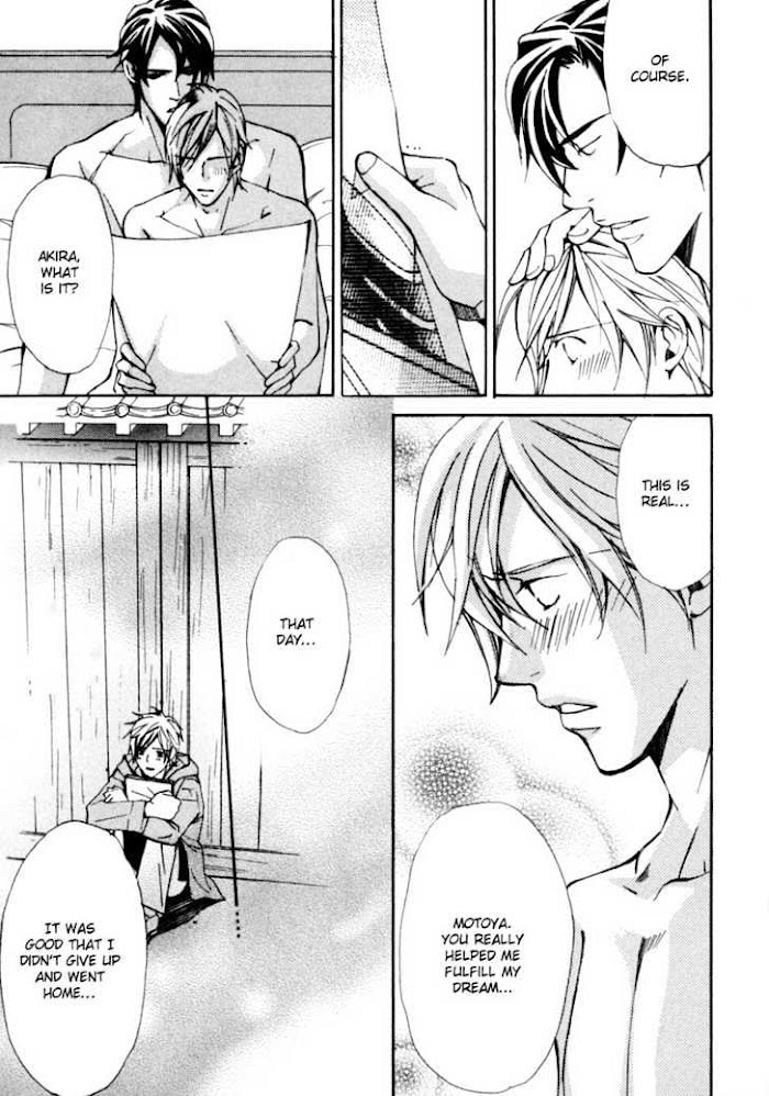 "Please let me be your lover." In order to save Okanoue Shopping Center and help his brother continue with his dream of being a concert violonist, Akira, the owner of Sudou Fruits and Vegetables, decides to become a lover of an employee of the devlopment company. Unbeknowst to him, his lover is Motoya, the grandson of the owner of the company and now current head of the division preparing to buy out Okanoe shopping center. Can their relationship withstand the truth? (Source: Attractive Fascinante)
