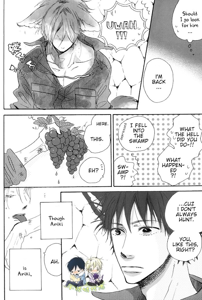 (Ogura Muku) Story 1: A short, fluffy read about a squirrel and a bear. (Kobato Mebaru) Story 2: A wolf and a fox are... brothers?!