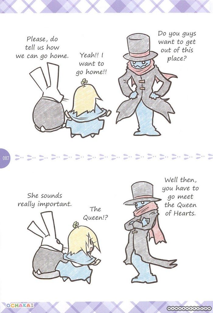 This time Little Red meets the White Rabbit, who was incidentally halfway through a race with a turtle. Together they discover a mysterious hole in the ground which leads them to Wonderland. There she meets many delightful personalities like the Cheshire Cat, the Mad Hatter and the Queen of Hearts, in addition to characters from the first book. How exactly will the airheaded Little Red manage to get herself out of Wonderland? (Source: demiotaku).