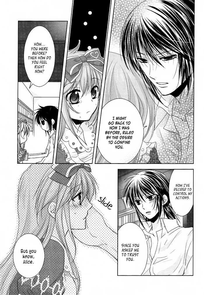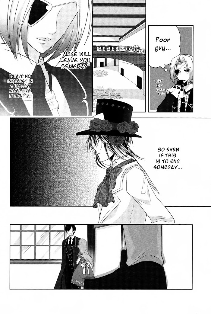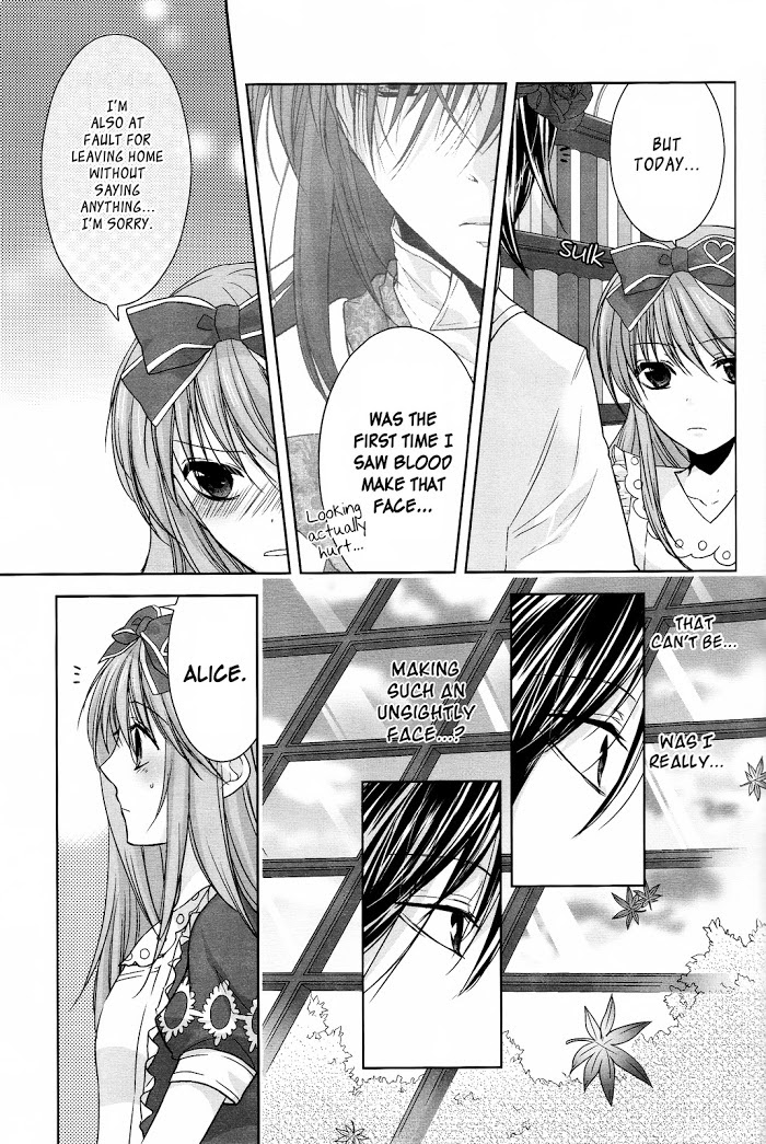 Alice Love Fables ~Rose Petit Cœur~ manga summary: "I have no interest in a hollow word like eternity. So even if this is to end someday...I'd rather live in the moment."A romance between the Hatter and Alice.He's a man who tends to find most things troublesome, always looking so weary of the world. His jealous streak is almost as strong as his selfishness.The chaotic romance with this mafia boss with his great dislike for boredom is full of twists and turns, an utter mayhem.Fraught with dangers yet laced with tender sweetness, their love story unfolds in the land of mysteries.> Part of the Heart no Kuni no Alice / Clover no Kuni no Alice series( http://www.batoto.net/search?name=Alice&name_cond=c&artist_name=QuinRose&artist_name_cond=is )
