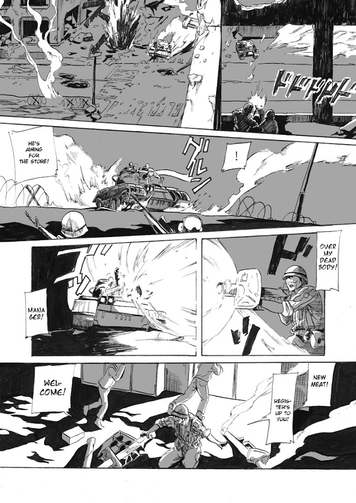 All Quiet on Lawson War Front manga summary: An ordinary young man takes a part-time job at a Lawson convenience store... that happens to be in the middle of a war zone. Will he make it alive?