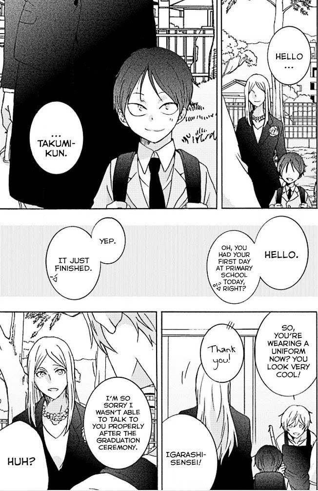 Hikaru dreams of becoming a chef. However, nothing's going right in his life – he's just been dumped, and has few job prospects. This all changes the day he goes to pick up his nephew from kindergarten when he instantly falls in love with a new teacher there. But, before Hikaru can declare his feelings, his nephew says, "Sensei's going to be my wife in the future!" Is Hikaru's rival in love really his five-year old nephew?