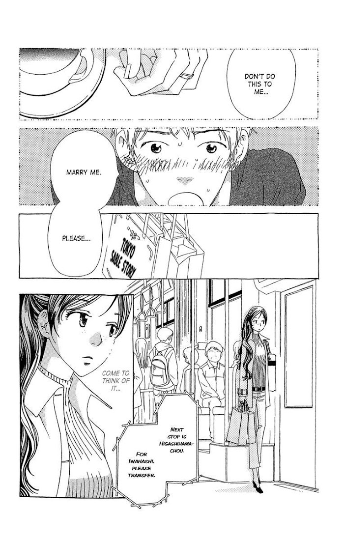Iwatani Yori is a 39-year-old woman who leads a quiet life while working at the library. She thinks things like love and marriage are too troublesome. A handsome, but suspicious man approaches her, claiming to be an old childhood friend. Maki has cared for Yori since he was a boy, but now he's a married man–married to a woman who looks exactly like Yori. This apparently doesn't stop him from chasing down Yori who desperately tries to push him away. What kind of future could this love (?) have? (Source: the manga habit)