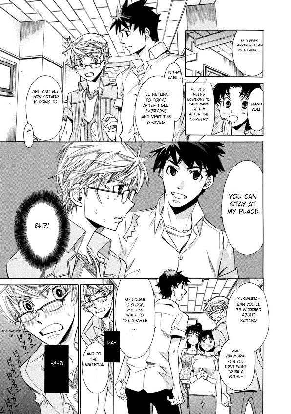 Aozora no Shita Koi wa Hajimaru manga summary: It's summer break and Yuuichi has gone to his family's home in the country, but things get crazy when his cousin is taken to hospital. When he's about to head back to Tokyo, his cousin's friend Sei offers him a place to stay. The truth is Yuuichi's been in love with Sei for the past two years, so he can't believe he gets to stay under the same roof with him! Yuuichi can't get sex off his mind, but he can't do anything about it, leaving his heart to just pound and pound...... Then Sei's childhood friend makes an appearance! This is a love story, set in the beautiful, expansive country! There are 6 stories in total, including "Our Summer!" parts 1-4, "Looking at the Gentle Moon", and a special "Our Summer" side-story. There are even a few extra illustrations.
