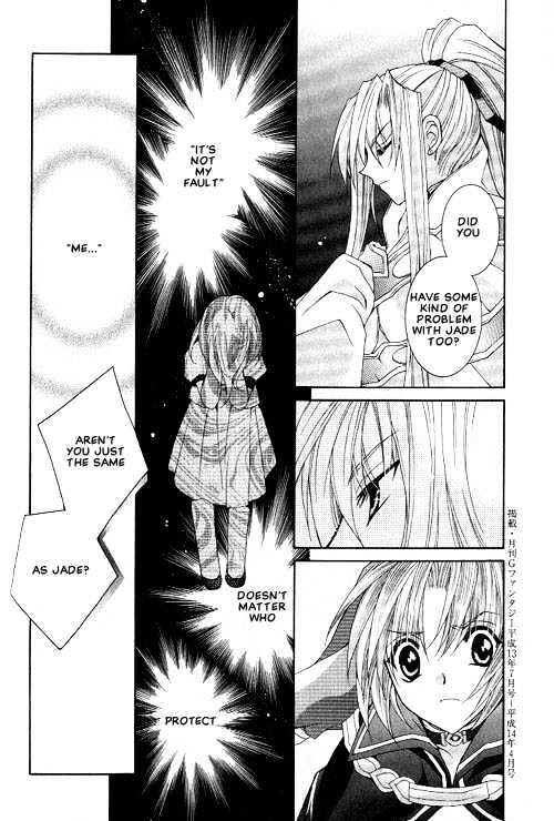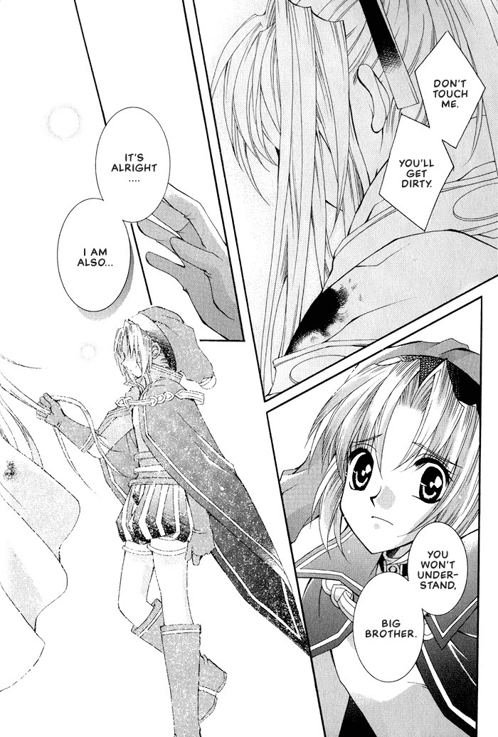 "The star, fallen from celestial, built a kingdom in the abyss. He cultivates rusted souls fallen into the abyss. The star was trying to build a beautiful land. And then, hundreds of million nights had gone. The king of the abyss was laid up. He tried with his last power, and gave birth to two hopes. The red prince was born from his right eye, and the blue prince was another one. The future is always only one." Apocripha/0 takes place in a "devil's point of view," in a world known as "Naraku." Since devils live here, in vice versa, angels from 'heaven' are their enemies. In this world, there was a powerful king of Hell who ruled under the absolute rule that "only the strongest will survive." He spent a long time trying to create a peaceful world, but his time was almost up, and therefore, his hopes lie in the fates of his twin princes - Alex and Platina. The king ordered Alex and Platina to fight each other in the "battle/war of succession." They were raised and trained by their own staff officers - Sapphirus takes care of Alex, and Jade trains Platina. Aside from having the same blood flowing in them, the two princes are actually strangers to each other. Alex does not want to fight Platina, but Platina does not seem to hesitate. Does Platina really want to fight? Will they have the strength to fight each other? Only the strongest will survive... Who will win? Aside from the "war of succession," a young boy named Beryl seemed to know a lot about the two princes, but in the midst he remains a mystery to them.. Sapphirus and Jade seemed to know something also. The princes both also saw visions of different events and even voices in their dreams. What do they all mean? (Source: Diadeem Project)