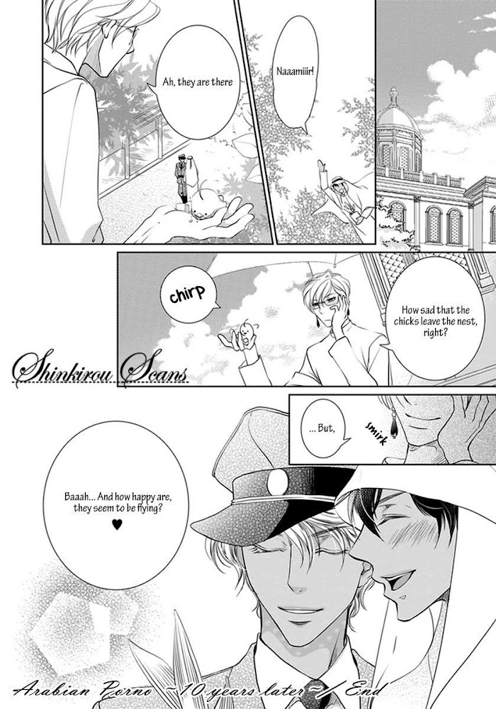 Bi Shinkirou Scans:Since you are a novelist, narrate me with your body the history of your pleasure and your sensuality!!.Now, let's start with our thousand and one nights.From MAL:A novelist visits an Arabic country and saves a little boy from the Arabian prince, and in turn he has to seduce the prince every night before the prince gets bored and cuts the novelist's legs off.