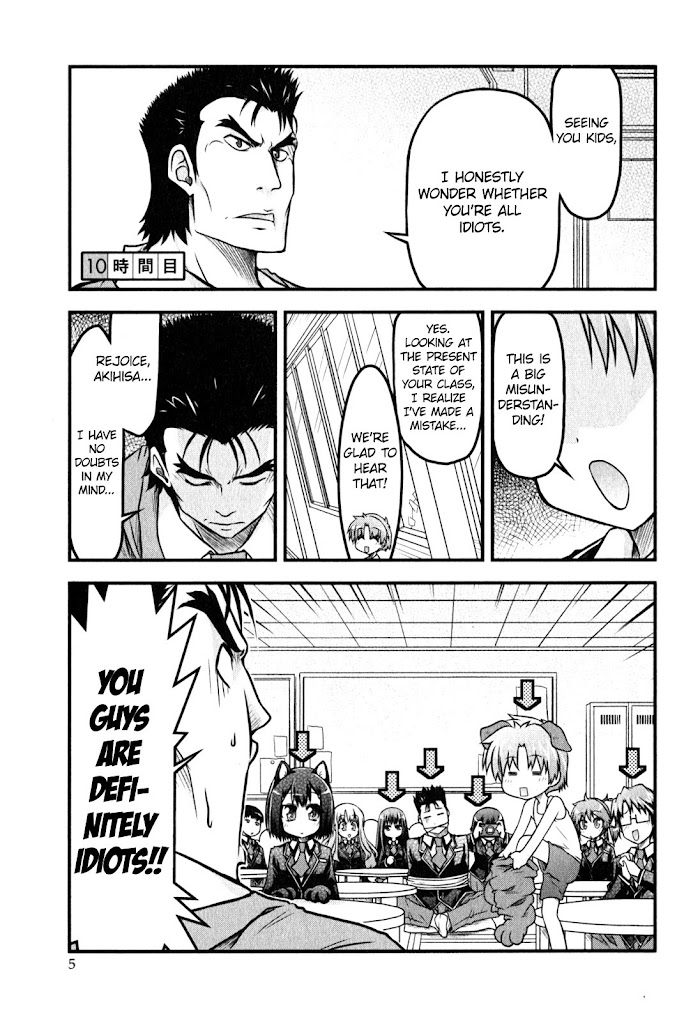 Baka to Test to Shokanjuu Dya manga summary: At Fumidzuki Academy, classes are separated by academic achievement. The smartest kids are in A Class, while the dumbest are in F Class. This chronicles the daily life of the students in F Class. Instead of grades, they have to worry about homosexual stalkers, crushes, ambiguous genders, and waging academic war on the upper classes!