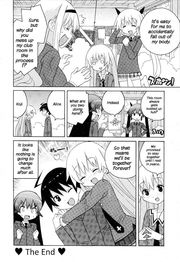 One day when average middle schooler Koji Miyahara came home from school, he found a naked girl sleeping in his bed. To his surprise, she was a ghost, and her name was Alice Fujinomiya! Alice can only be seen by other people when Koji's nearby, so she decides to become his girlfriend. (Source: MU) Included one-shot: Volume 2: Range de Chin!