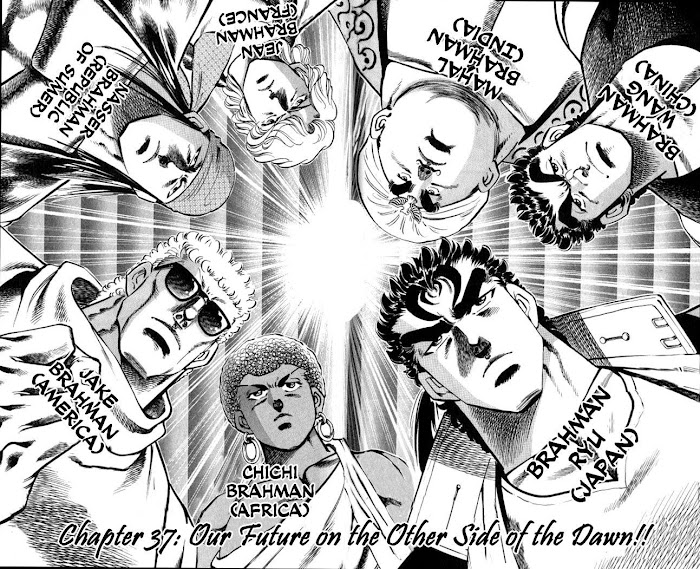 Three thousand years ago, a sect of ancient Indian priests who sought world peace and justice, developed an unimaginable fist and sent their disciples throughout the world. Their mission, passed on to their descendants, was to live in the shadows of history and judge the evils of this world where the law cannot judge! They are the Family of Brahman! (Source: Hokuto no Gun)