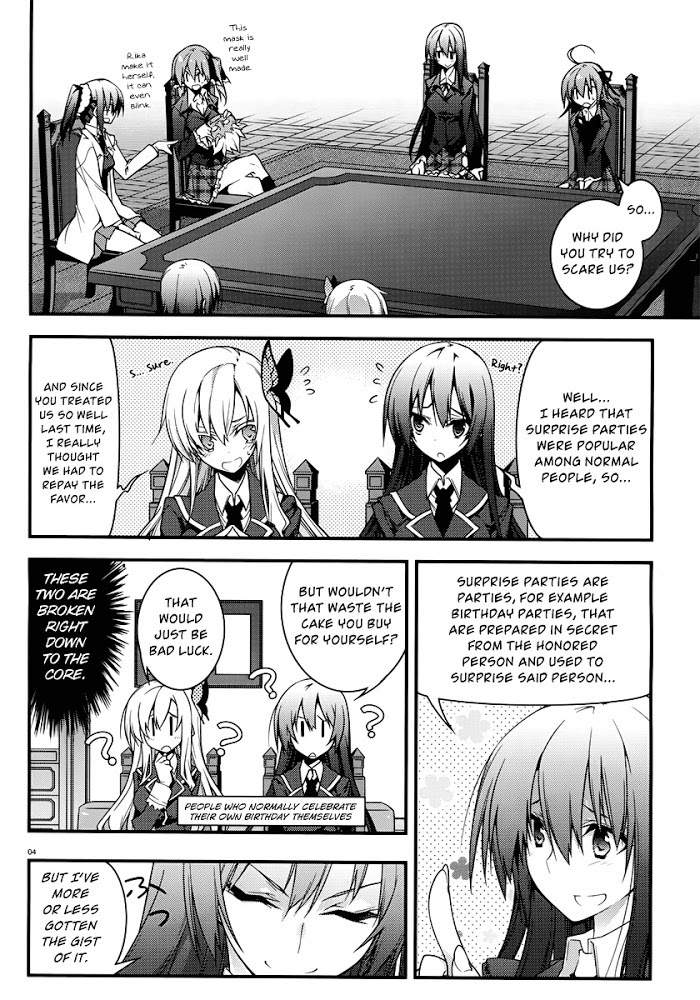 The characters from both Haganai and Seitokai no Ichizon visit each others' clubroom in this two-part crossover. Strangely enough, the male protagonists from each manga do not make appearances. Chapter One: The Neighbor's Club gets a mysterious message from a certain student council! This chapter was drawn by Itachi, the artist of the Haganai manga. Chapter Two: The Hekiyou Gakuen student council receives an invitation from the Neighbor's Club to visit. This chapter was drawn by 10mo, the artist of the Seitokai no Ichizon manga.