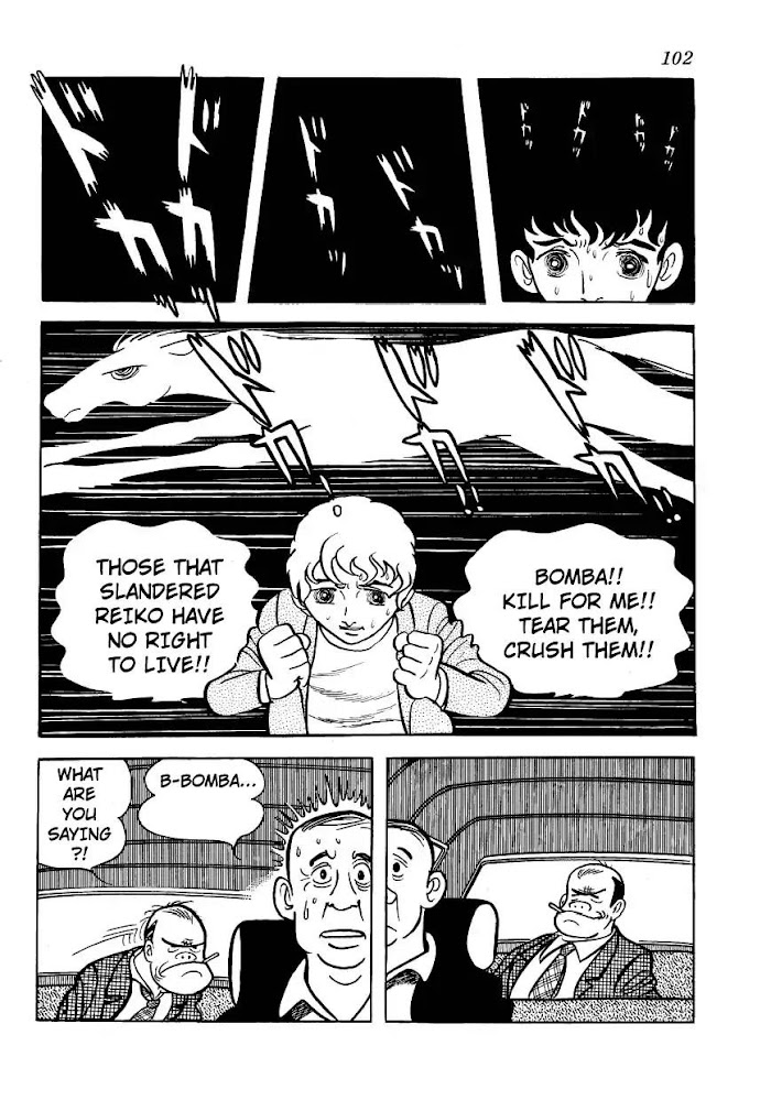 Tetsu realizes that this horse is the ghost of Bomba, a horse Tetsu's father told him he was charged to take care of during the Pacific War. Now, whenever Tetsu feels intense hatred for someone, Bomba will appear and cause that person to die.