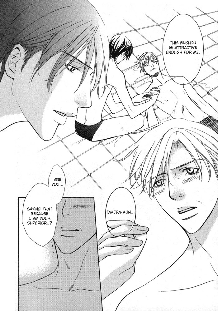 1. Buchou to Takeda-kun 2. Yume Miru youni Dakaretai Iizuka Kunio is facing middle age and is not going without a fight, especially since his younger subordinate Takeda-kun has been at his office. 5. Asayake no Anchikushou "Soap" was the name of a place where Motoki whored himself to homosexuals. He hadn't expected to work there permanently, but circumstances had left him to stay. Life wasn't that great, but a meeting with Jiro from the tofu shop changed that. And after that it seemed as though chance and kindness slowly weaved them into each other's life. 6. Seishun Nano Missile Heaven (The Attack of the Youth Missile) A oneshot concerning friends since elementary school, and it's time for a birthday celebration. Both boys seem to have their "gift" in mind. Who gets the gift? Who gives the gift? Who is the main course for dinner? 7. GINO