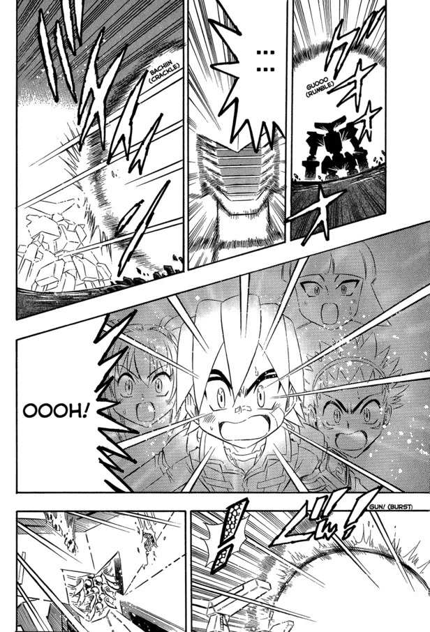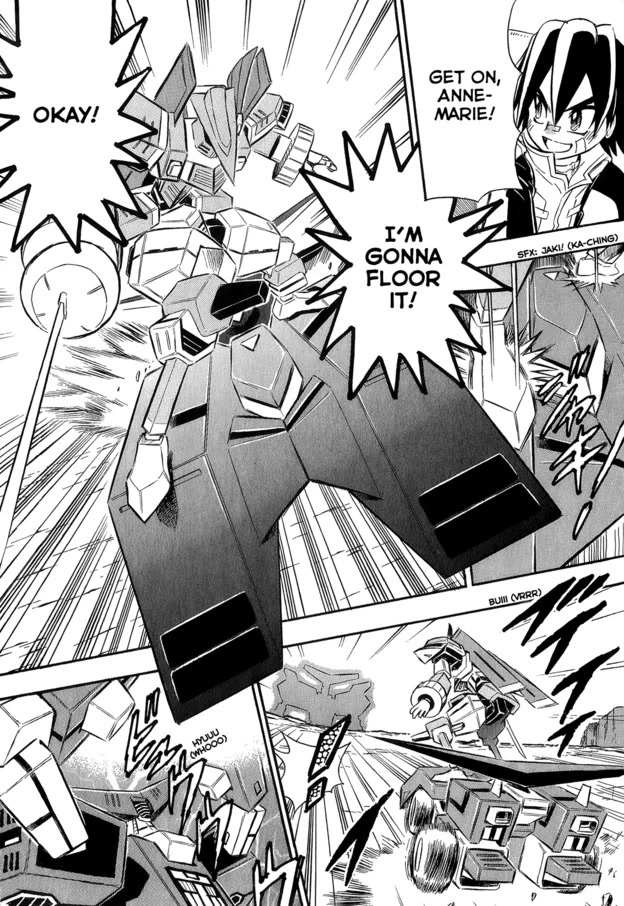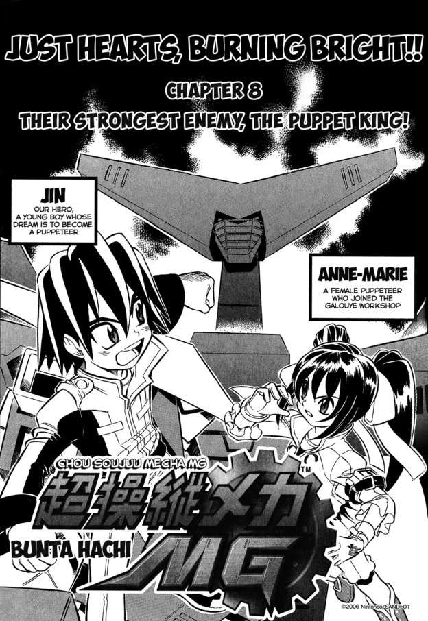 Little kid Jin is a dab hand at mecha piloting (who'd have thought!), and when he isn't horsing around with other people's property, he's fighting against the evil forces of the Automen. To go along with the Chou Soujuu Mecha MG translation patch (available on stargood.org), Phantom scanlated several chapters of the tie-in manga created to promote the game.