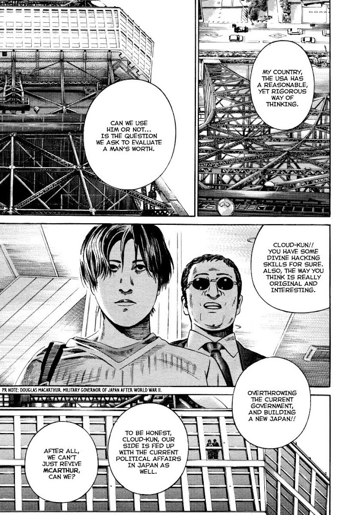 The Tokyo Metro central computer has been cracked! Out of the chaos of wild passengers and a frantic transport ministry, Cloud's story begins. A child prodigy who has grown up into a black hat hacker strives to fulfil his impossible dream of making a kingdom on top of the clouds! But how will he do this and what will the government and police even allow him to try? (Source: MU)