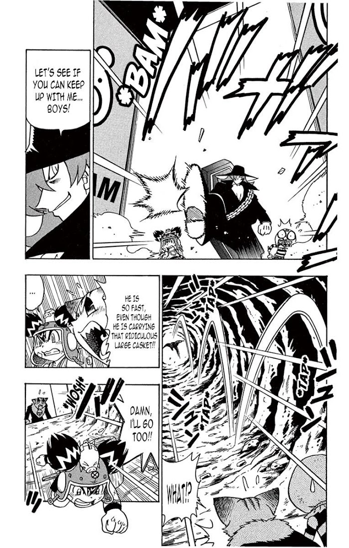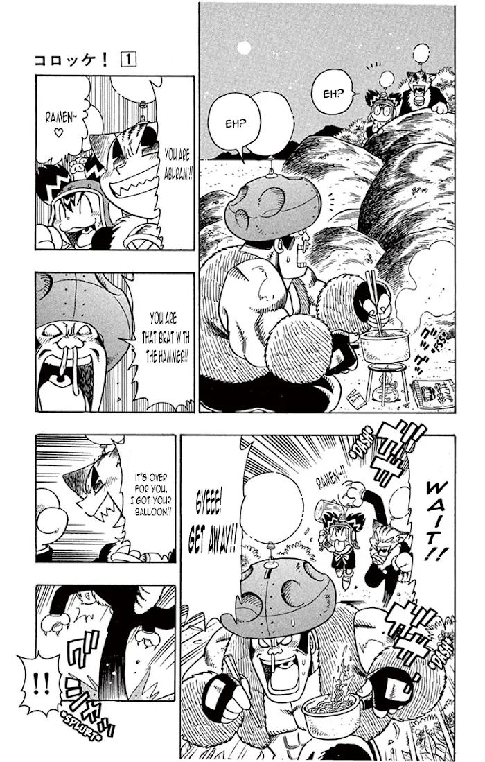 The world of Croket! is one inhabited by both humans and exotic creatures such as anthropomorphic animals and where individuals called Bankers travel around the world to collect magical coins called Kinkas with their Kinka Banks. Kinkas are said to activate the appearance of the Bank Wizard, who will grant the wish of any Banker who collects enough Kinkas. The story mainly revolves around Croket, a young and scrappy Banker with incredible strength whose wish is to revive his father, a legendary Banker named Burger, who was said to be defeated by a villain Croket knows as the "Black Gown Man." (Source: Wikipedia)