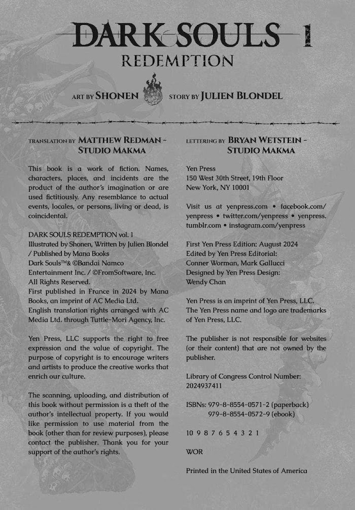 Dark Souls Redemption ~ A Son's Curse, a Mother's Destiny ~ A son's curse, a mother's destiny. The dying ashes of a campfire light up a devastated world. A woman, brought back to life by a mysterious mark, emerges from a deep sleep with no memory of her past. In this unrecognizable universe, she is pursued relentlessly by the dreaded Guild of Scale Guardians. However, she is offered unexpected salvation by an imposing individual who fiercely guards the secret of his own past Be prepared to face the lonely souls and embrace the darkness once more, in this original, never-before-seen Dark Souls story.