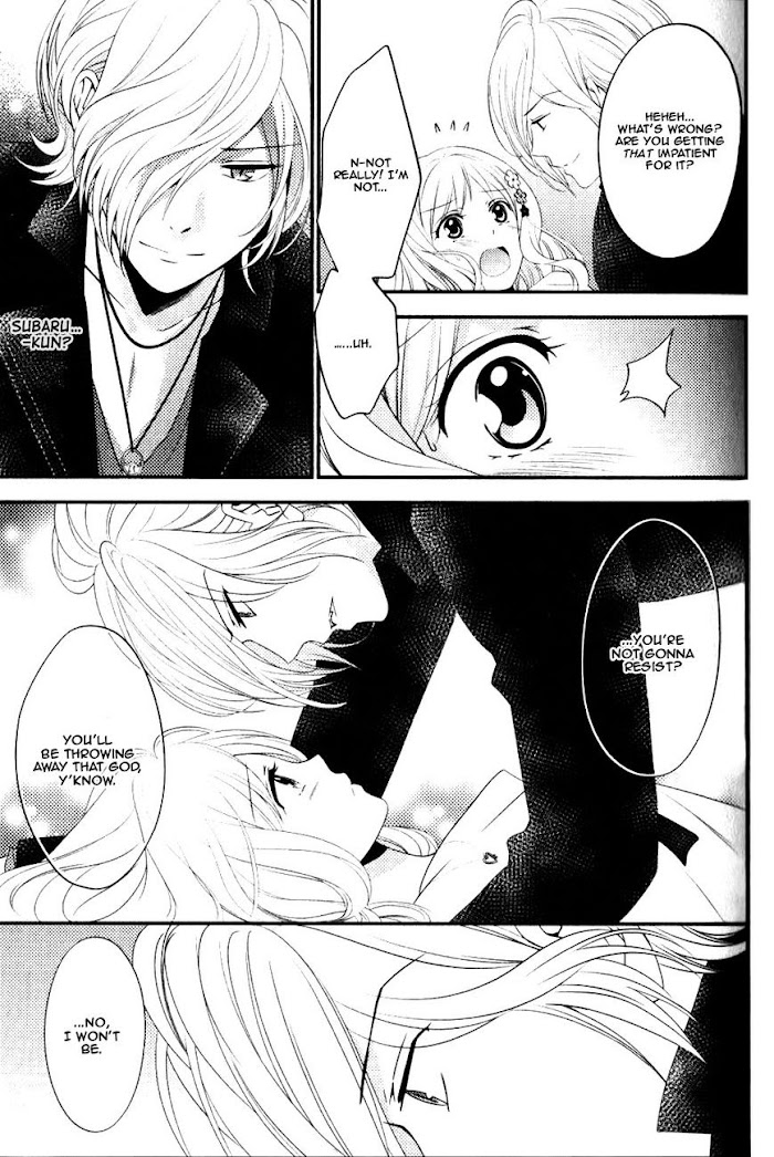 The manga adaptation of the otome game. The story centers around the six sadistic Sakamaki vampire brothers and a girl, Komori Yui, who goes to live with them. Yui Komori is a positive-thinking girl who nevertheless is troubled by seeing spirits and experiencing poltergeist phenomena. In her second year in high school, she transfers to a new school - a night school for entertainers and celebrities - due to her father's work. There are rumors that there are vampires among the student body, and Yui ends up living with the Sakamaki brothers. (Source: ANN)