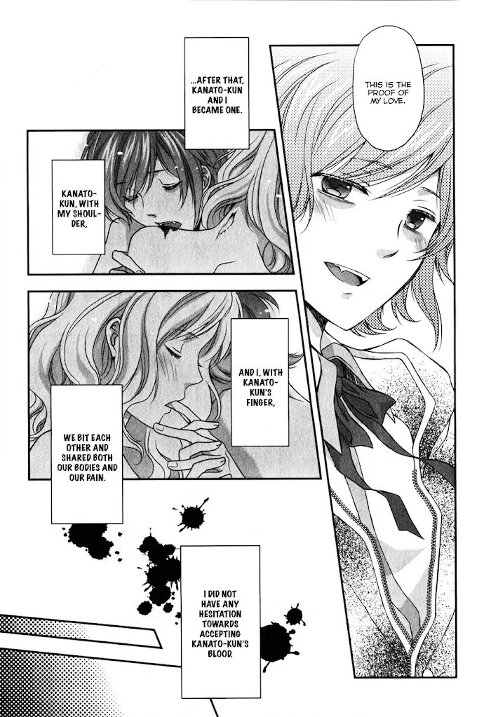 Diabolik Lovers: Sequel - Kanato, Shuu, Reiji Arc manga summary: Oneshots focusing on Kanato, Shuu and Reiji from the otome game Diabolik Lovers and a girl, Komori Yui, who goes to live with them. Yui Komori is a positive-thinking girl who nevertheless is troubled by seeing spirits and experiencing poltergeist phenomena. In her second year in high school, she transfers to a new school - a night school for entertainers and celebrities - due to her father's work. There are rumors that there are vampires among the student body, and Yui ends up living with the Sakamaki brothers.