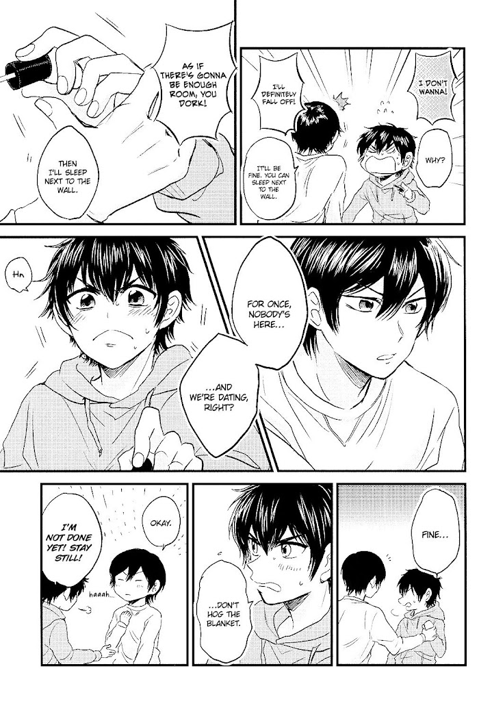 When many of the students are away for a holiday including Kuramochi, Furuya asks if he can sleep over in his boyfriend Sawamura's room for the night.