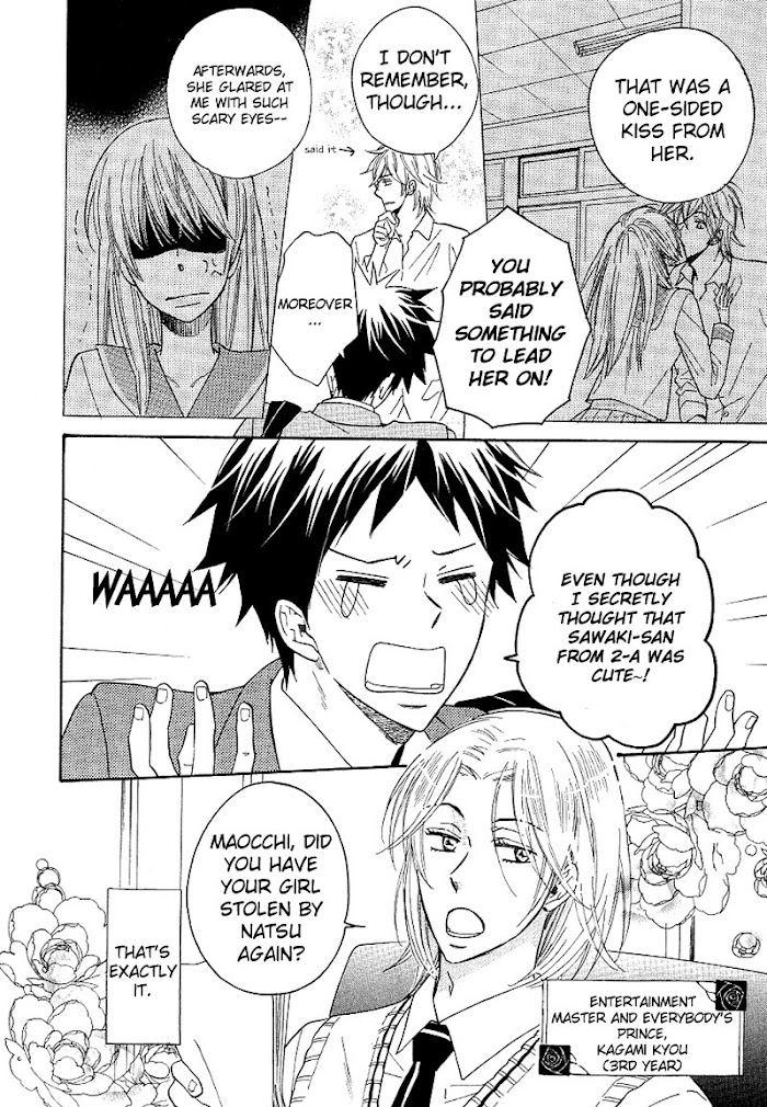 All three of Mao's highschool girlfriends have been taken away by the gorgeous-looking Yuu. But in retaliation to the slap that he gave this popular guy, a confused Mao gets a kiss..!? Soon he's dragged into the world of the school's "celebrities," who all have special talents, which range from "entertainment" to cosplay, and even pleasure! What has Mao (unwillingly) gotten himself into? (Source: MU)
