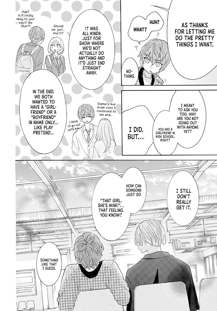 from -menos-FreeTime & Lilac scans: In order to be pampered by girls, Ren has been "Selling BL" (fanservice) by flirting with Issei, a handsome guy who attends the same college. But one day, Ren is suddenly kissed by Issei?! A fascinating love comedy that begins with a lie.