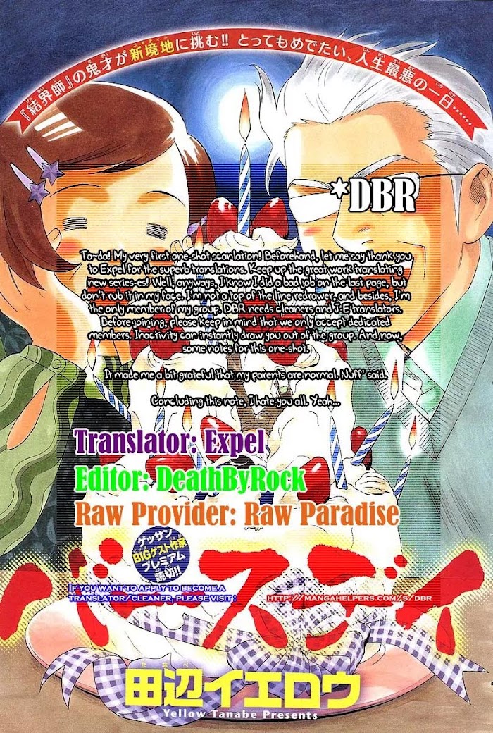 Tanabe Yellow one shot collection, including her debut "Lost Princess" and the original pilot of Kekkaishi. Birthday Hiroshi, a boy who dislikes being spoiled and wants to live a normal life, was given a toy that would make him a hero on his fifteenth birthday. (Source: MU)