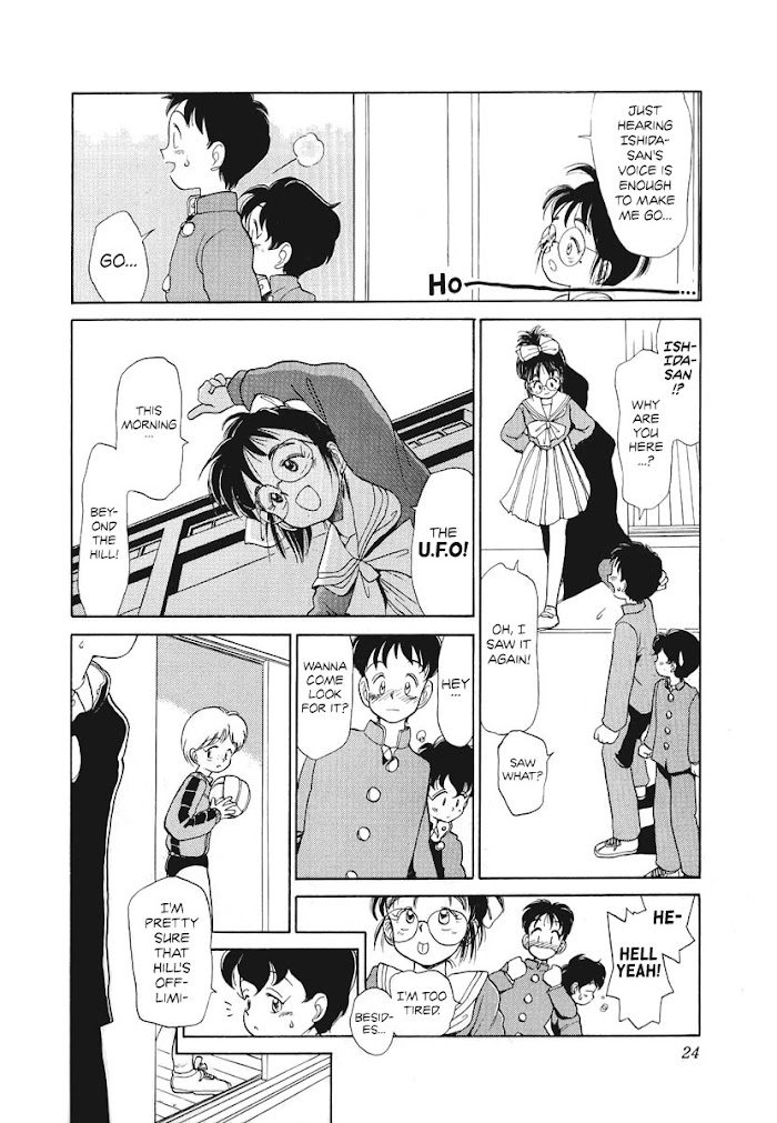 Junior high student Mao Hoshimi is a small and somewhat effeminate but otherwise typical boy. At least he is until he turns into a girl while hitting the baths with his best friend Shunsuke Hidaka! But this is the least of his shocks--Mao learns he is actually of alien descent! Because the numbers of his species are so few, Mao learns, its members have the ability to change shape to breed with other species--and also to transform from male to female and from female to male to suit a potential mate. It seems that, now that Mao is in puberty, he is fated to become a suitable partner for whomsoever he comes in close contact with, be it Tomoko Yokawa, the cute girl he just met, or, to his horror, Shunsuke! (Source: MU)
