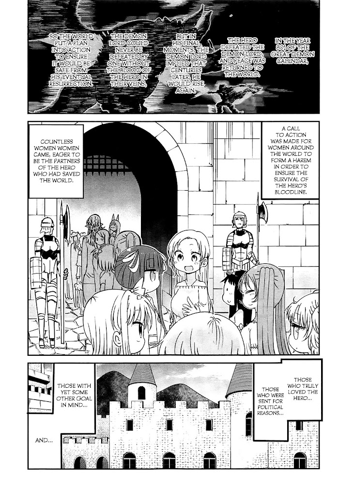 The story of Fukumaden takes place in a world after the Demon King has been defeated by the hero. The hero makes a harem of women to pass down his blood, because the Demon King is fated to return in the next few hundred years. However, because he gathered too many girls, there are 100 women in waiting. The story depicts the women spending their time talking amongst each other as they wait for their turn to meet the hero. (Source: ANN)