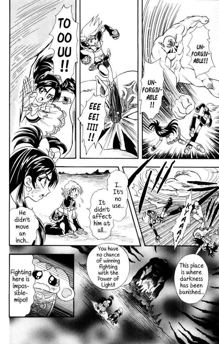 Nagisa Misumi and Honoka Yukishiro couldn't be more different. Nagisa is sporty and Honoka bookish, and while they attend the same school, they have very little in common-until one day, a shower of shooting stars brings two very unlikely visitors into their lives: Mippuru and Meppuru, refugees from the Garden of Light, which has been conquered by Darkness. Endowed with new and startling powers, Nagisa and Honoka become Cure Black and Cure White, magical defenders of the light-together, they are Pretty Cure. (Source: MU)