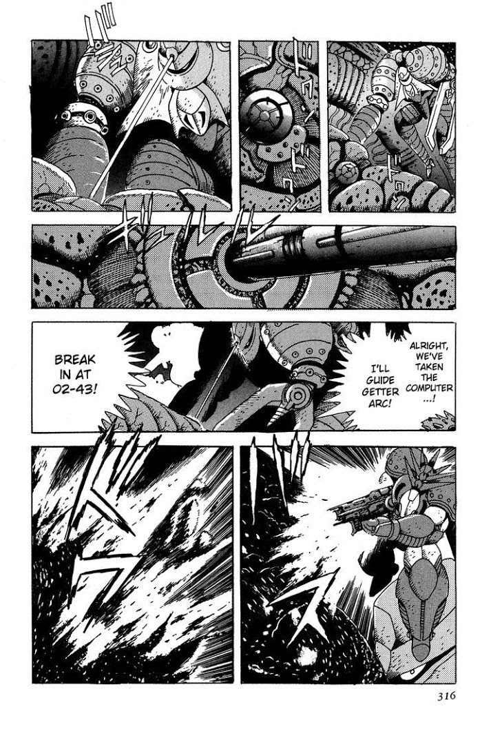 Getter Robo Āḥ is the fifth Getter Robo series chronologically. Taking place several years after Getter Robo Go, Earth is now a post-apocalyptic world. Hayato, now an aging scientist, has completed Professor Saotome's masterpiece, Getter Robo Āḥ. Piloting it are Ryoma's son Takuma, the human-dinosaur Kamui and the younger brother of Tayel, Baku. Alongside the reformed Dinosaur Empire, they fight the insectoid Andromeda Flow Country attacking from across time and space.