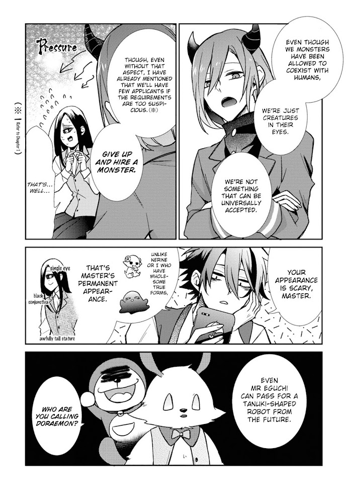 Shino was a dirt-poor, female high school student. For the sake of money, bring on the suspicious, live-in part-time job where "interviews aren't needed, and you can be hired right away as soon as you send your resume"!!! However, when she went to the residence for the first time, her employer was a cyclops--?! The monster x human life with a master who gets way too heated in his love of humans and a female high school student who was so poor she tried eating the weeds in the garden!
