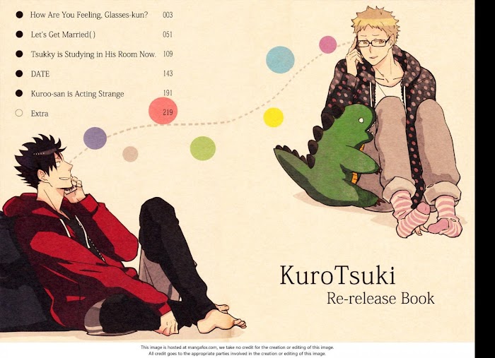 Chronological order:1. Gokigen Ikaga? Megane-kun2. Kekkon () Shiyo yo!!3. Tsukishima-kun wa Benkyouchuu.4. Date5. Kuroo-san ga Hen Nandesu.6. Kakioroshi