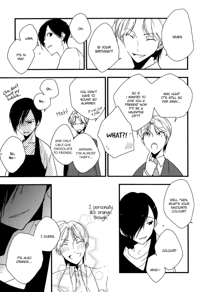Arisaka, man in his late twenties, owns a flower shop. He does his job to see the happy smiling faces of his customer, specially one who goes by the name of Shuuji. Shuuji visits his shop regularly to buy bouquet of flowers for his lover whenever she has a performance. Succumbed to his very one-sided love, Arisaka could only look from afar and pray for Shuuji's happiness. Until one day… (Source: Echochi)