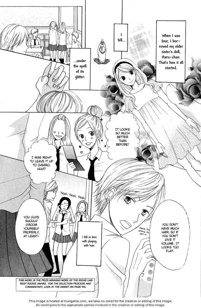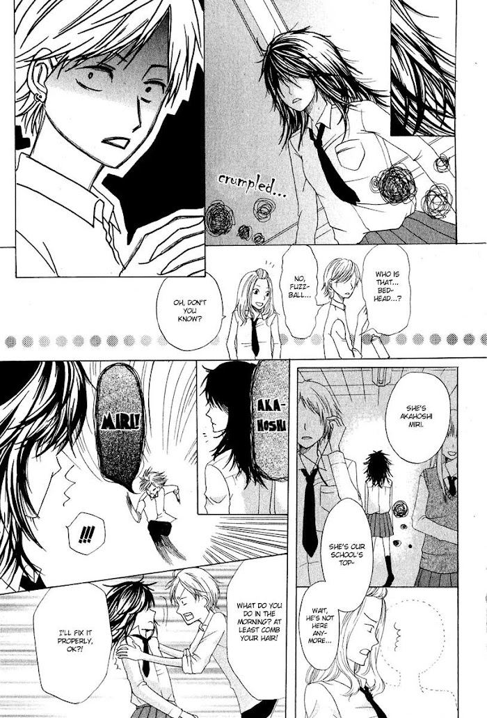 Chihiro loves fixing up girls' hairstyles. So, when he sees Akahoshi Miri's bedhead, he can't resist playing with it too. (Source: Aerandria Scans)