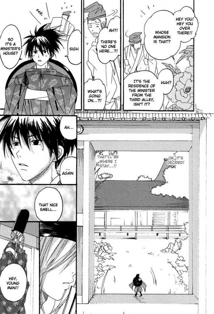 A shounen-ai version of the Issun-boushi story. Heikuroo is only as big as a human hand and only in the light of the moon he can gain the normal height. Because people think he is cursed, he leaves his village and goes to the capital, where he becomes a guardian of an aristocrat named Kotohira... (from Wasurenagusa)