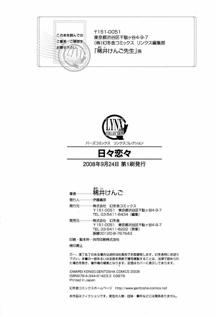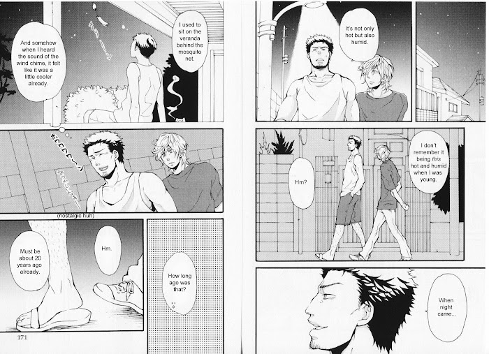Collection of one shots. 1) Love Everyday 2) Midnight Delivery 3) Late Night Struggle 4) Hands 5) The Two of Them, Waiting for Spring 6) The Prey I Aim for Won't Escape: 7) It's HOT! (Source: Fujoshi Spirit)