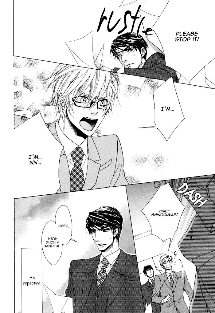 The story between an elite president company and his loyal secretary. Takemiya is working as a secretary for the Young President, Iwase. Iwase is an amazing guy who has a huge gap. Compared to his gorgeous looks and capabilities, he's an airhead and his honest side is totally cute! The younger dog, Takemiya, is madly in love with that President and always gets led around by him, but…?! The dog suddenly returns the favor clumsily saying, "President, I want to hold you?!" (Source: Fujoshi Bitches:)