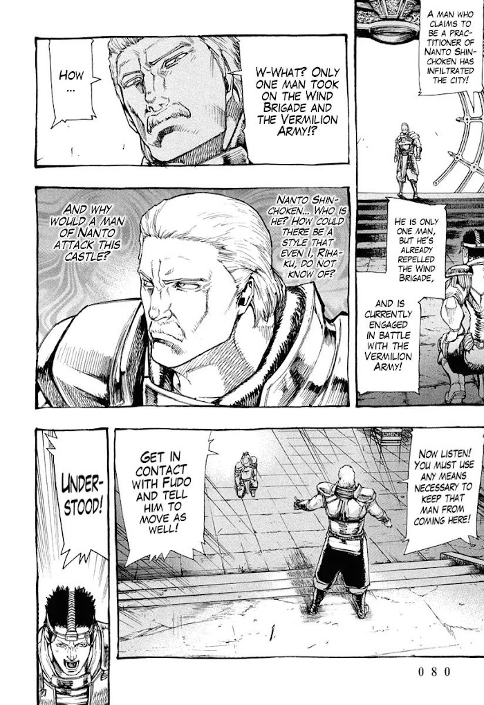 The story is a spin-off prequel to the original Hokuto no Ken. It centers around Garuda who practices the Nanto Shinchou Ken style of martial arts. In the manga he will fight the five Nanto Goshasei members, impress Rihaku and provide a chance for Kenshirou and Yuria to unite. (Source: Hokuto no Ken Wikia)