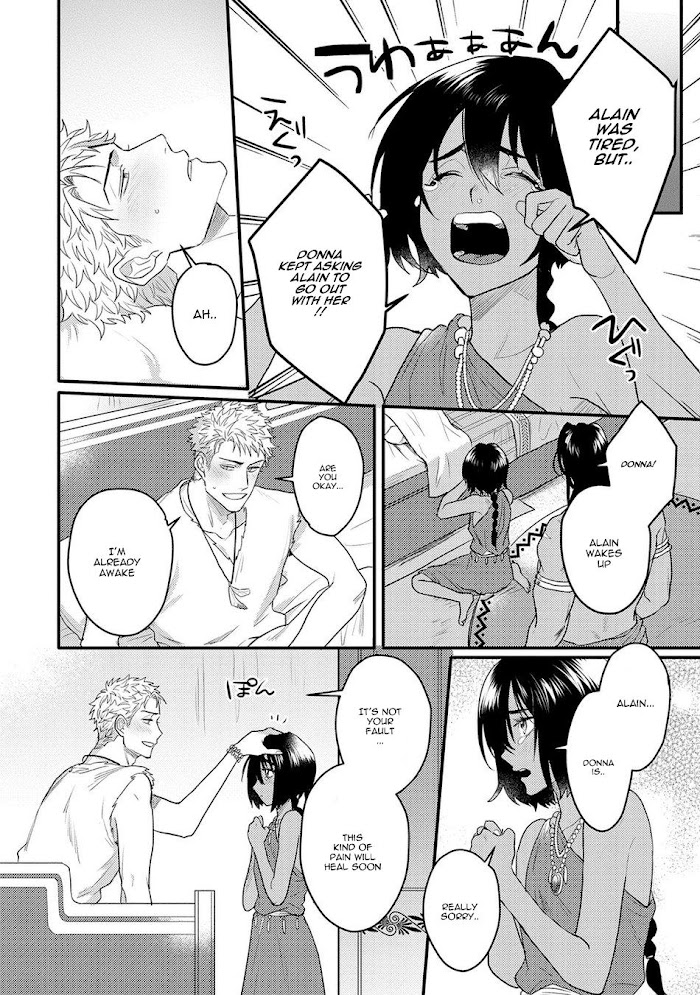 Alain, the second prince of the Kingdom of Cors, has faced a dire problem. His mother, the king's mistress, decided to poison the crown prince to make her own son the next king. However, Alain doesn't wish to harm his brothers and fight for the throne, so he asks Saul, a Matara warrior trapped in the castle's dungeon, for help in order to flee from Cors. To receive Saul's cooperation, Alain must make a special vow with him and confirm it… with his body?!