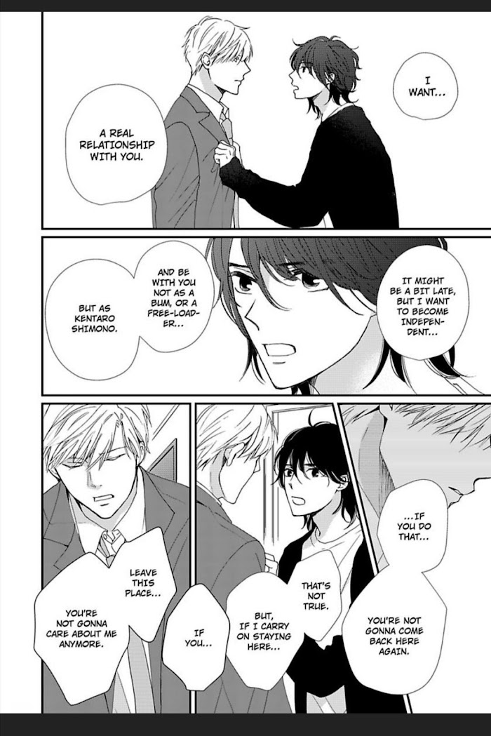 Successful businessman Kou Tsubaki is hopelessly in love with the jobless Kentaro Shimono. While attending a singles party, Kou bumps into Kentaro, who was a few grades above him in high school. The only reason Kou was there in the first place was to get over Kentaro... When Kou learns that Kentaro is homeless, he invites the older man to stay with him, and Kentaro doesn't mind showing Kou just how grateful he is. How will Kou react when the man of his dreams is right in front of him...!?