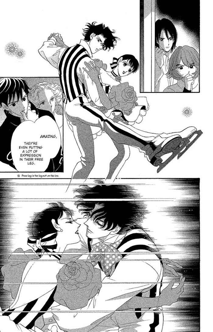 Mangafox: Yukino, a single skater who had to quit because of a lesion, goes to say her farewell to the ice rink where she used to practice and is now being demolished. Ikki Kouga, a former skater and head of the group in charge of the demolition notices her skills and makes a proposition to her: to pair up with Gilbert Roman, a half Japanese half Canadian skater who ranked 6th in the Junior World Championships, for ice dance.