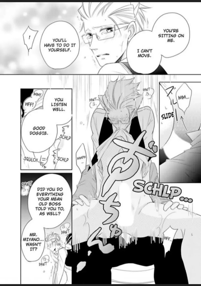 Atsushi Kido is an office worker with unusual tastes. Exhausted by days of overwork and power trips from his boss, he stops by his old part-time job, the Discipline Club, and is immediately asked to help out. When he enters the playroom, Atsushi finds a beautiful businessman with the prettiest posterior tied up and waiting...! The man, calling himself Aya, confesses to using his authority to harass people at work, and lifts his hips for a punishment. Atsushi can't get enough of Aya's behavior!