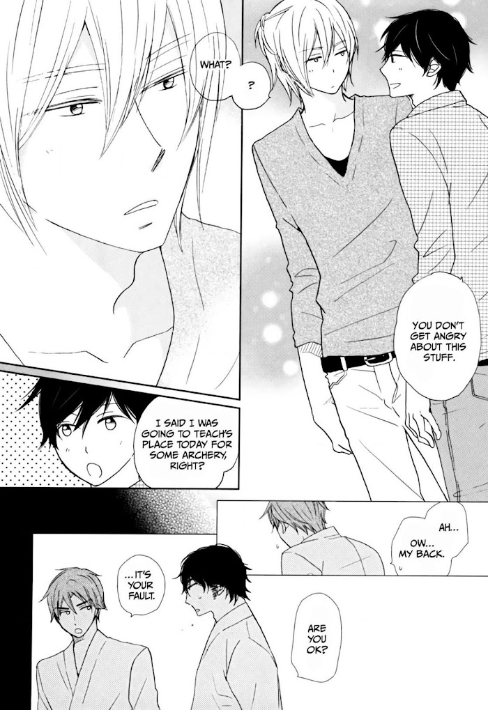 "If You Share A Kiss with Asakawa": In Izumi Nakama's grade are twins Satsuki and Ibuki Asakawa. Satsuki, unlike his stoic and cool younger twin Ibuki, is flirtatious and friendly. Just his luck, Izumi attracts the brother he was not interested in getting to know, Satsuki. As the two get on, Izumi starts realizing Satsuki's true character... (Note: Spiciness 1 out of 5) (Warning: uses of anti- gay slurs) "Rule 1 Series": Rio and Etsu have been together since high school and now live together as a happy couple. Madly in love and drunk in their attraction to each other, their intimate lives together are a bond nobody can break.