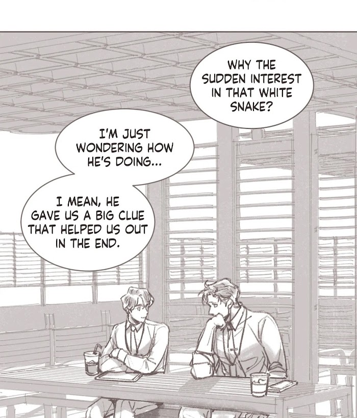 "Chaewool's world shatters when his boss - and the man he’s been in love with for ages - Chaeheon, unexpectedly dies. Struggling to cope, Chaewool fights to maintain his composure whilst going about daily life…until a familiar figure appears before his teary eyes. Chaeheon is back. Alive. But something is different; his memories are fragmented, his gaze unfamiliar, and his touch colder than before. What is this mysterious force lurking beneath the flawless exterior of Chaeheon? And is that…hissing I hear…?