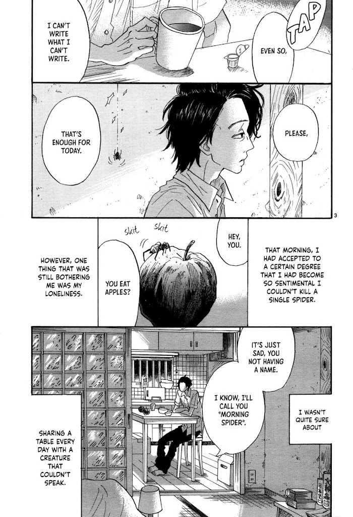 A small spider interrupts the life of a despondent author. Magazine oneshot published in Flowers 08-2017. Read In the White on mangago